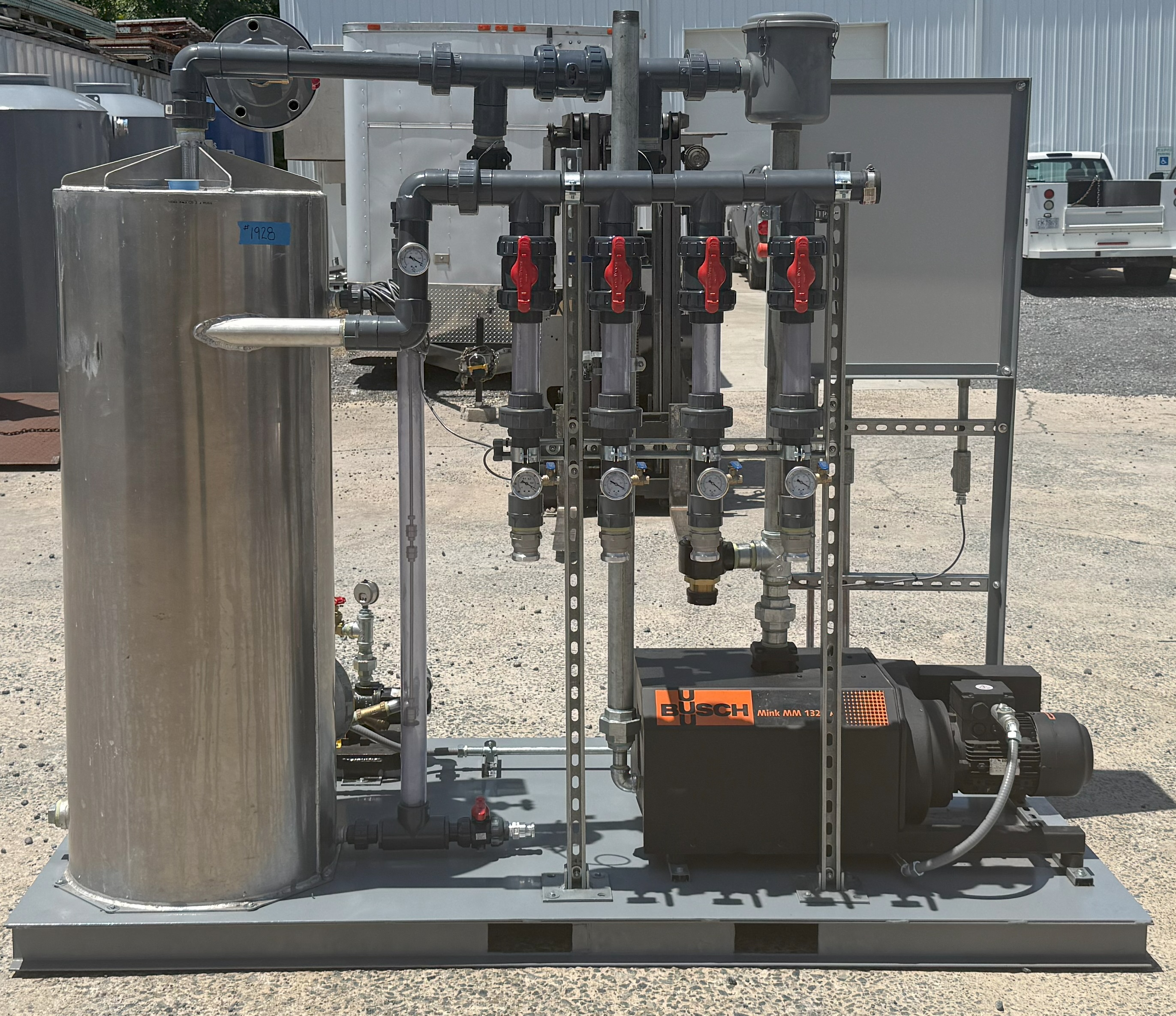 High Vacuum SVE or DPE Skid Including Busch MM1324AV Claw Blower with 5HP 3PH Motor, Knockout Tank with Sight Glass, 3 Level Floats, 4 Zone 2" Inlet Manifold, Moyno 34401 Progressive Cavity Pump with 1.5HP 3PH Motor, UL 508/698 Relay Logic Weatherproof Control Panel 230V 3PH, Mounted and Plumbed on Steel Skid, Wired for Class 1 Div 2 Group D Hazardous Location Outdoor/Weatherproof Installation