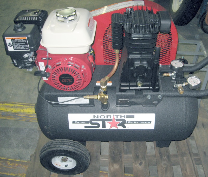 Honda Compressor with 5HP Gasoline Engine, 20 Gallon Tank, Filter Frame, Hoses, Etc.