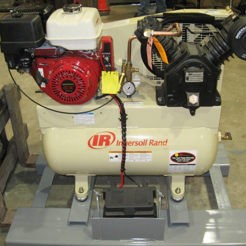 Ingersol Rand Compressor with 12HP Honda Electric Start Gasoline Engine, Air Tank, Filter Frame, Hoses, Etc.