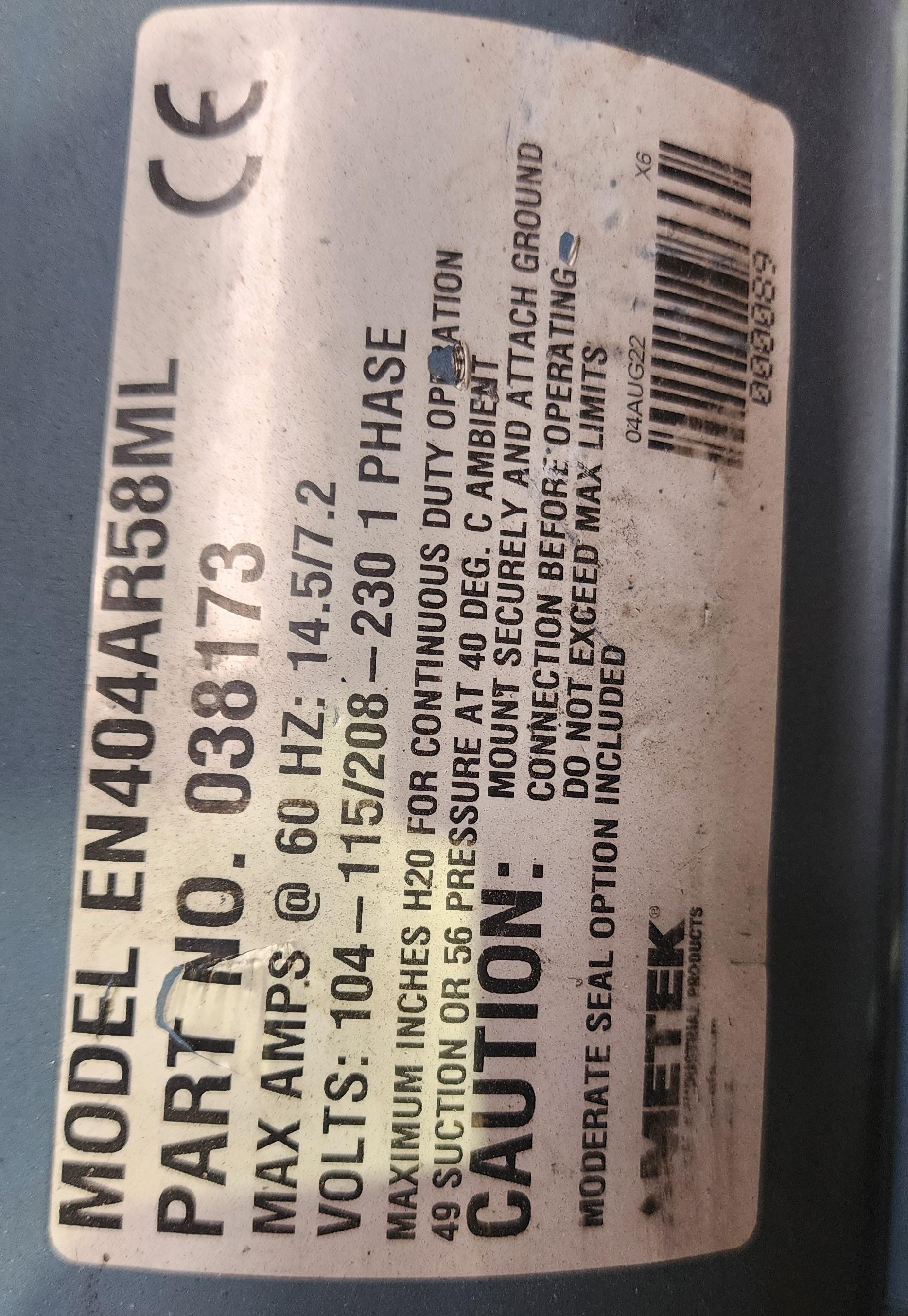 SVE Pilot Unit: Rotron EN404 1HP 1PH Blower on small frame with Inlet filter, Vacuum Gauge, XP On/Off Switch with Cord Wired 115V