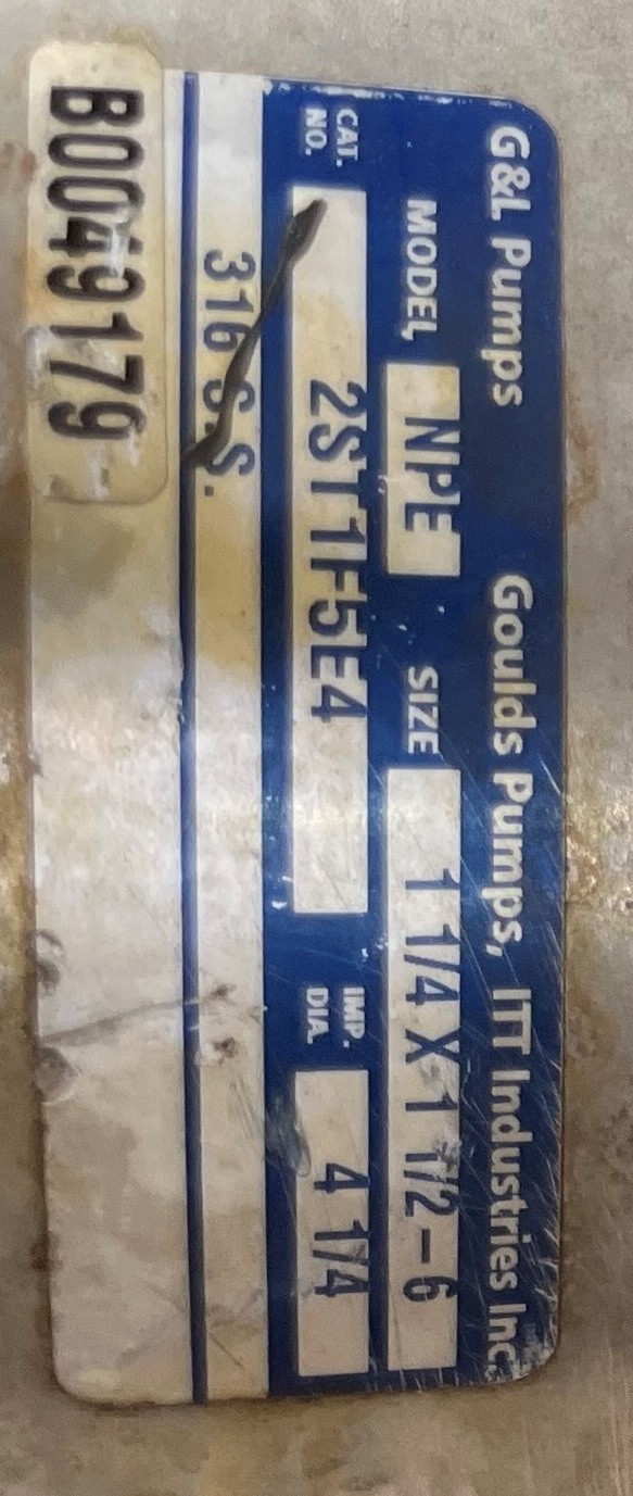 Used Goulds NPE, 2ST1F5E4, Centrifugal Pump, 3-Phase 1.5 HP, 208-230/460V TEFC Motor.