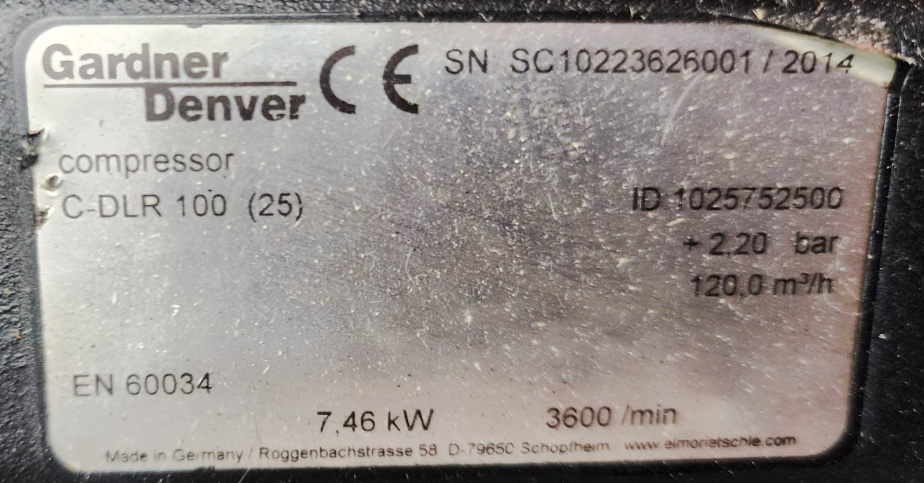 Used Rietschle DLR 100 Claw Compressor with New 10 HP, 3-Phase, 230/460V, XP Motor, Stock #2070