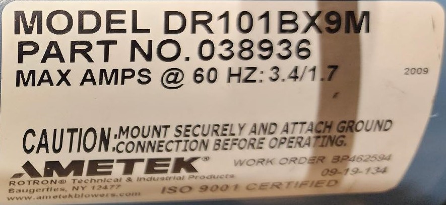 Used Rotron DR101BX9M Regenerative Blower #2043
