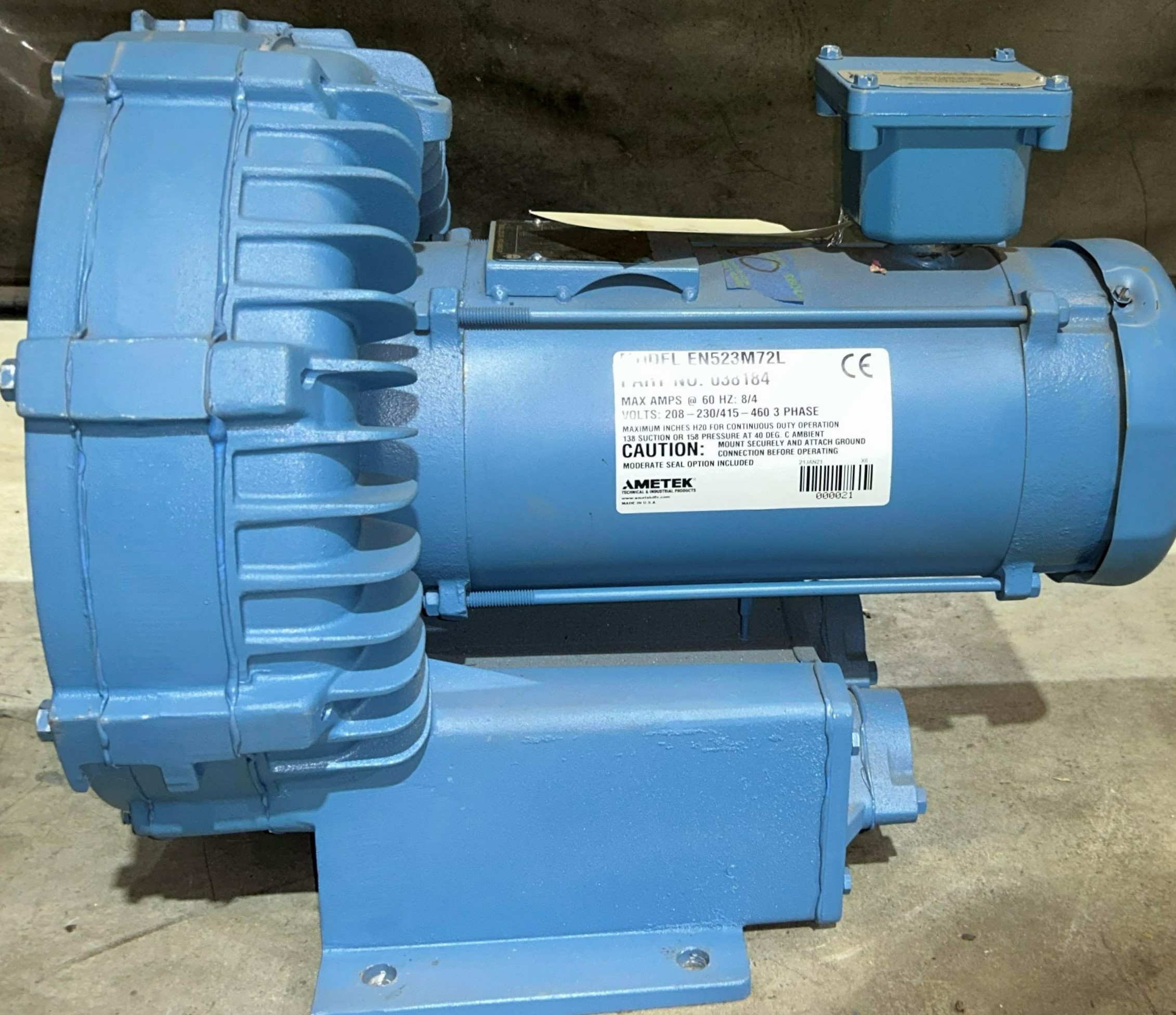 Used Rotron EN523M72L Regenerative Blower. 208-230/460, 3-Phase, 3HP, Explosion Proof Motor. Stock # 1660